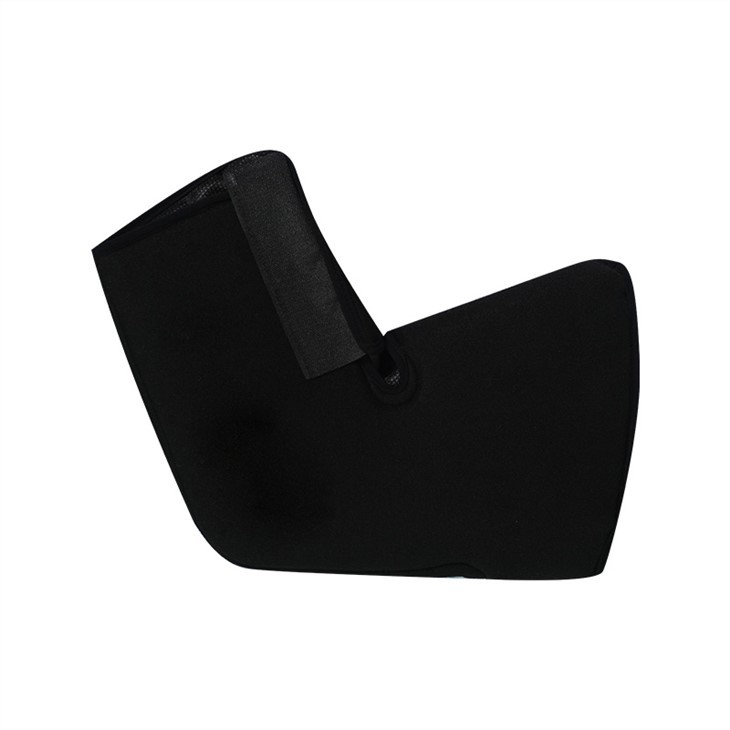 The attached elastic hook and loop fastened compression belts secure the therapy foot and ankle pad in place and add a gentle compression